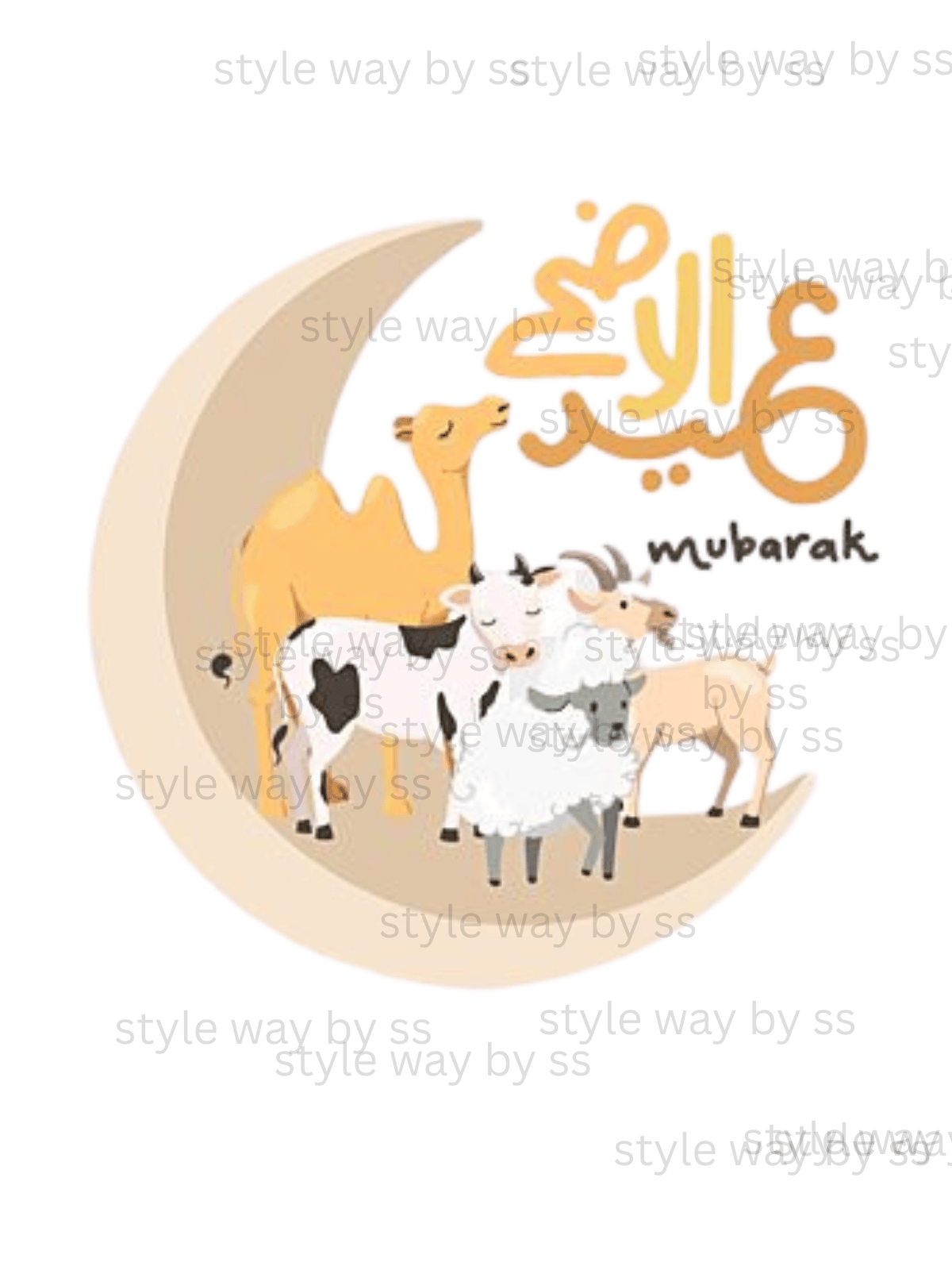 a moon with animals with writing eid ul azha on it