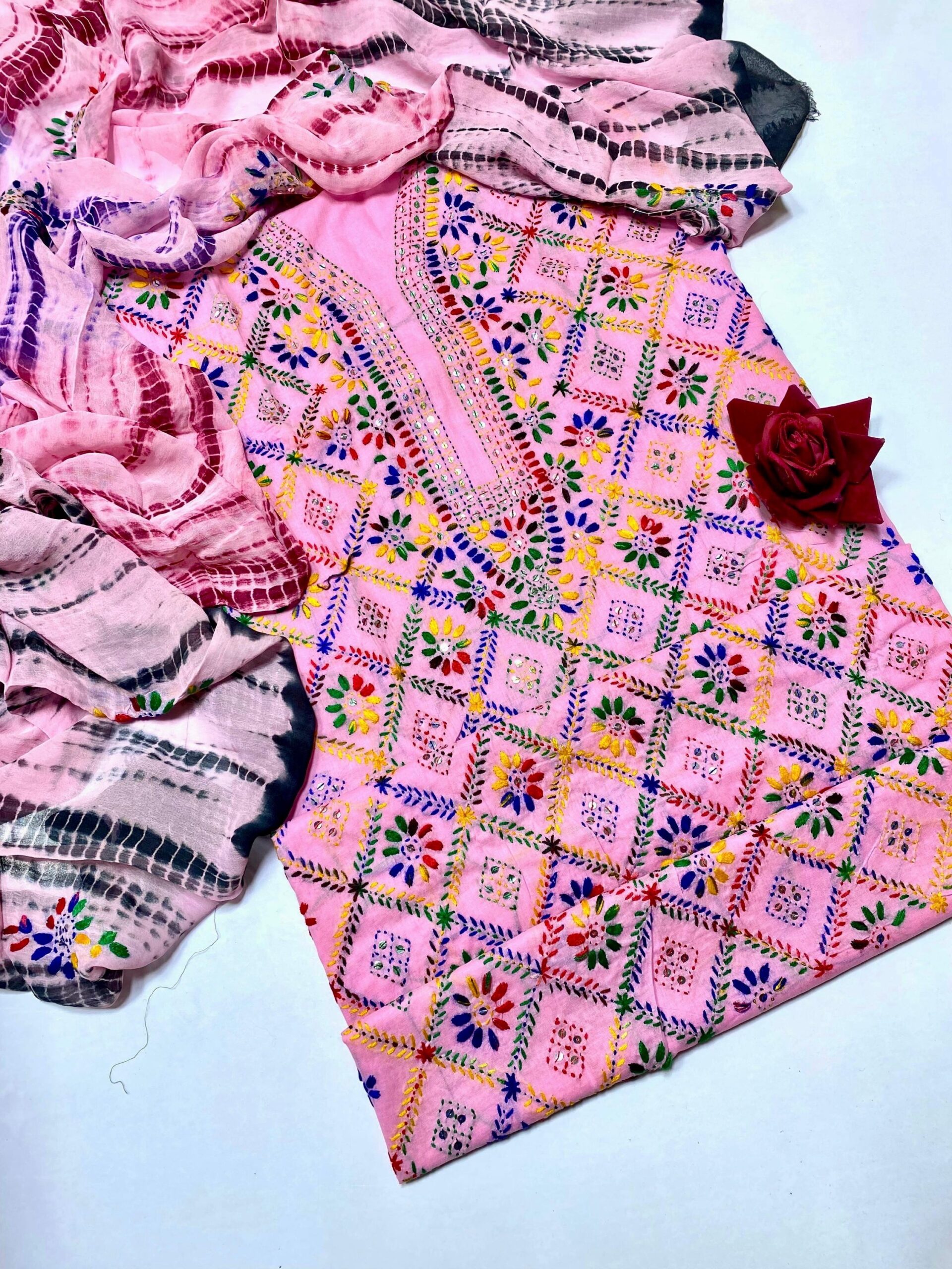 Stuff ; lawn trouser shirt , dupatta chifoon tye dye
